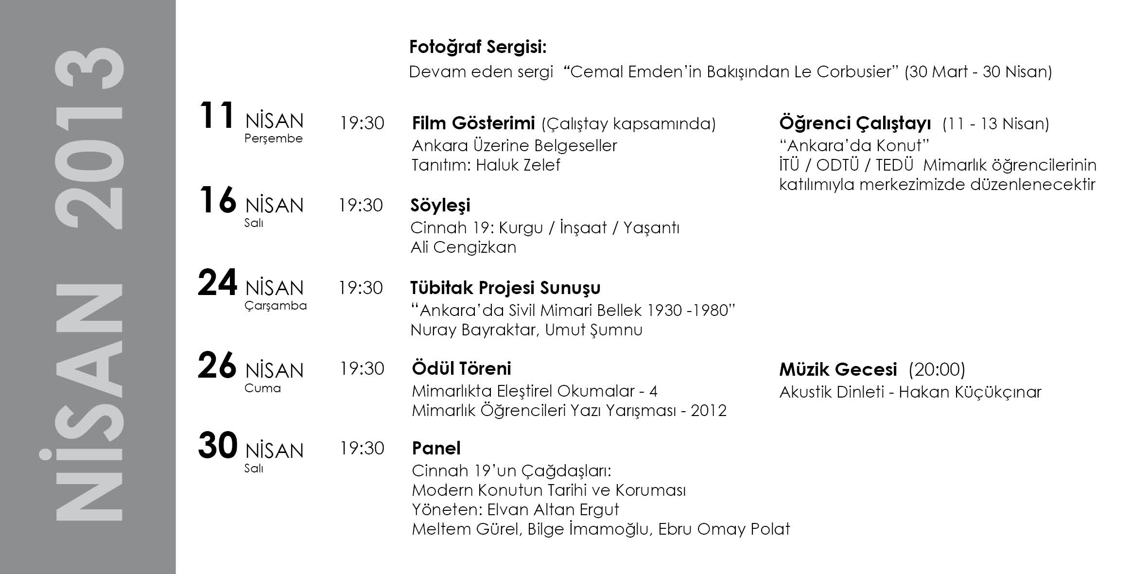 Mekanlar / Zamanlar / İnsanlar: Evsellik, Ev, Barınma ve Mimarlık TarihiODTÜ Mimarlık Tarihi Bölümü tarafından 12-13 Aralık 2013 tarihleri arasında ODTÜ’de gerçekleştirilen Sempozyum’a bir bildiri ile katılım sağlanmıştır.