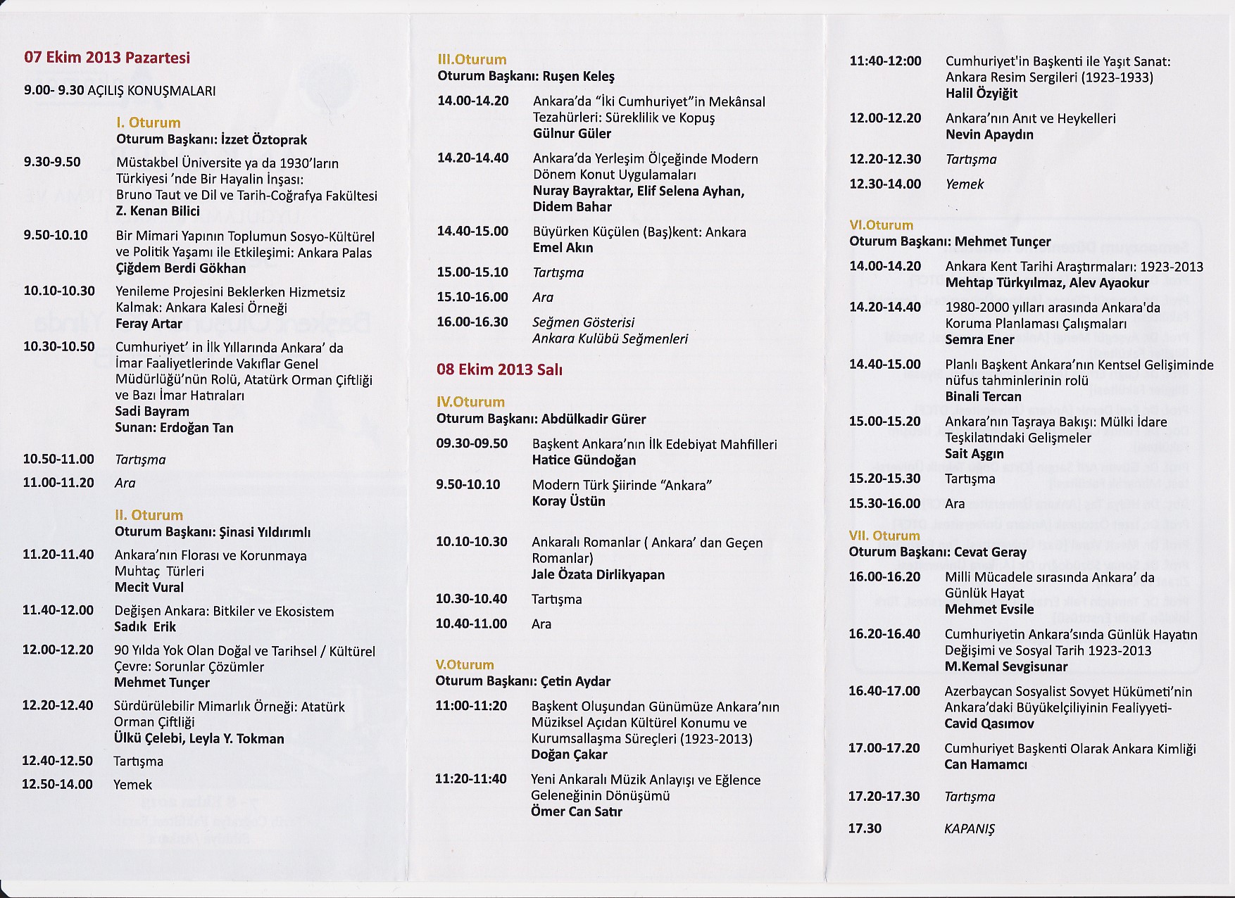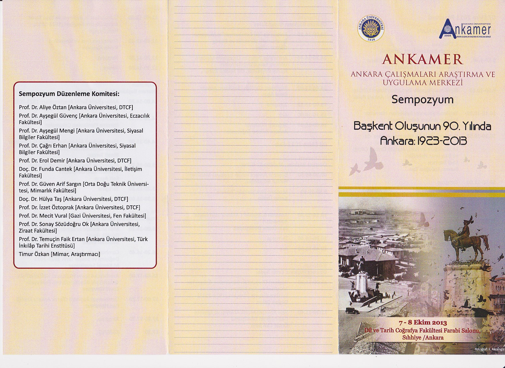 Başkent Oluşunun 90.Yılında AnkaraAnkara Üniversitesi Ankara Çalışmaları Araştırma ve Uygulama Merkezi tarafından 7 - 8 Ekim 2013 tarihleri arasında Ankara’da gerçekleştirilen Sempozyum’a bir bildiri ile katılım sağlanmıştır.